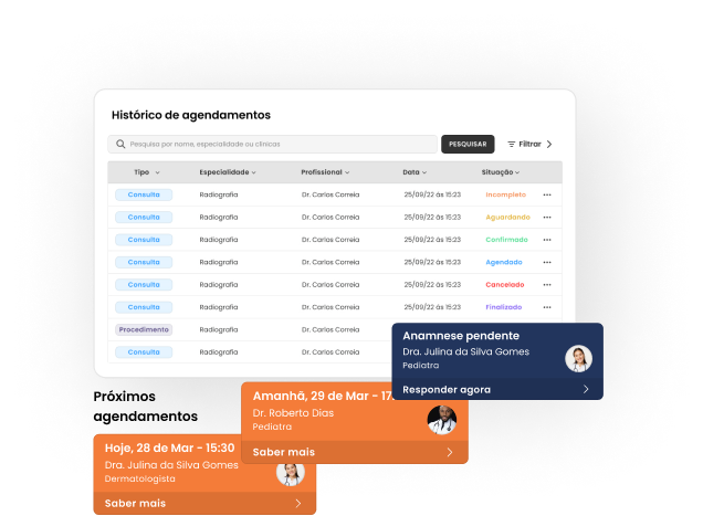 Em tempo real monitore o status do seu agendamento pelo seu perfil e com mensagens de e-mail.