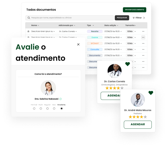 Avalie as consultas, adicione favoritos, configure seus documentos (receitas, exames, atestados...) e muito mais.